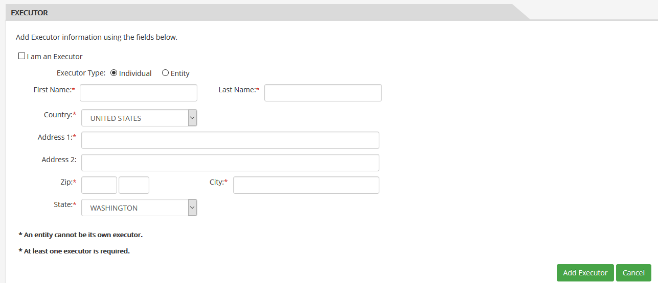 It will also ask you things like “Add a Governor” and “Add an Executor” if you are the sole proprietor of your business, that’s you, baby!!! Don’t forget to hit the “Add Executor” or “Add” button under each one!